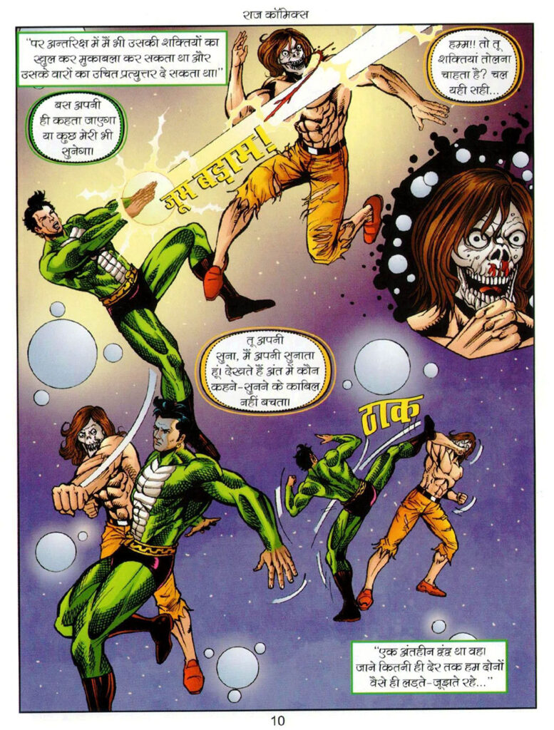 यह कॉमिक राज कॉमिक्स के स्केल को एक बिल्कुल नए स्तर पर ले जाती है। ‘ब्रह्म तत्व’ और ‘असुरों’ का आपसी जुड़ाव कहानी में नई ऊर्जा भर देता है। पृथ्वी हो, अंतरिक्ष हो, हेज्ट्रो ग्रह हो या आदिमानवों की दुनिया—हर मोर्चे पर एक्शन का स्तर बेहद ऊँचा और प्रभावशाली है।