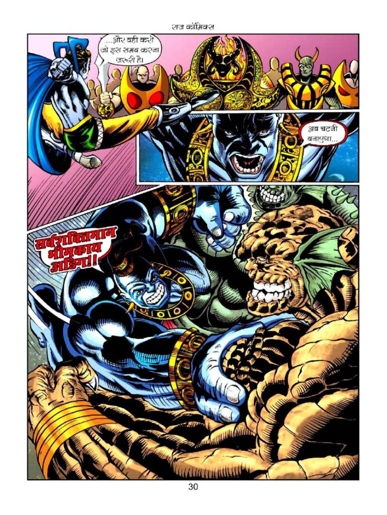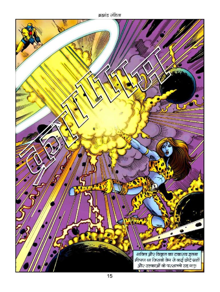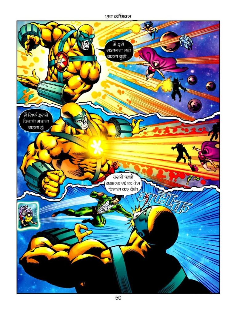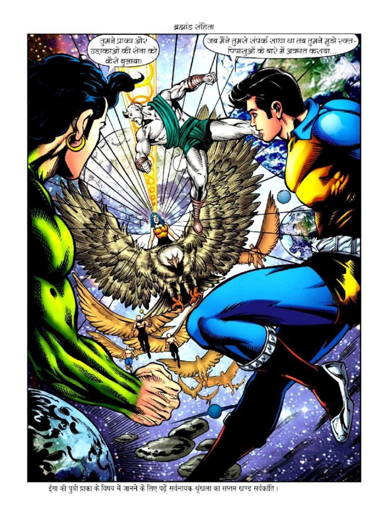 The main heroes are fighting in space, while planets like ‘Mactriam’ and ‘Hedjtro’ are being fought over by Doga, Inspector Steele, Tiranga, and other cosmogonists (Parshuram, Checker, Gagan, Adig).
