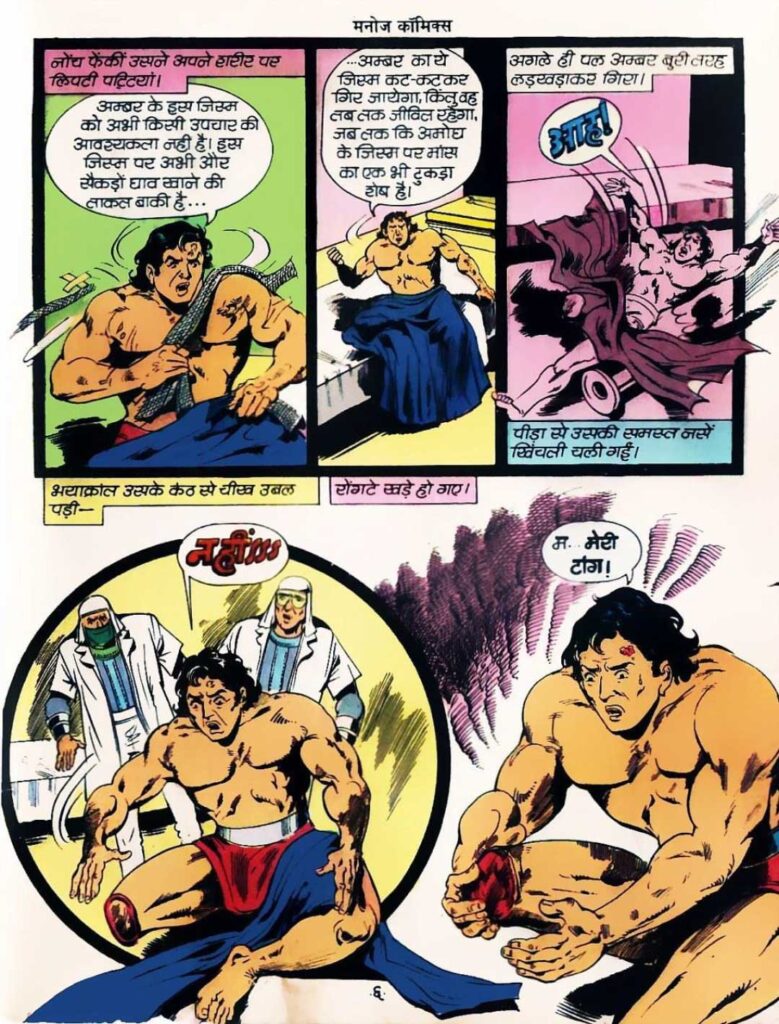 The concept of this comic is quite different and adventurous in itself. Showing a hero who is disabled in one leg but is equipped with modern and dangerous weapons to become a powerful warrior was a great experiment for that period. At the same time, the author has kept the suspense in the story by keeping the real villain, Kalguru Khataro, behind the scenes for most of the time and has also maintained the curiosity of the readers for the next episodes.