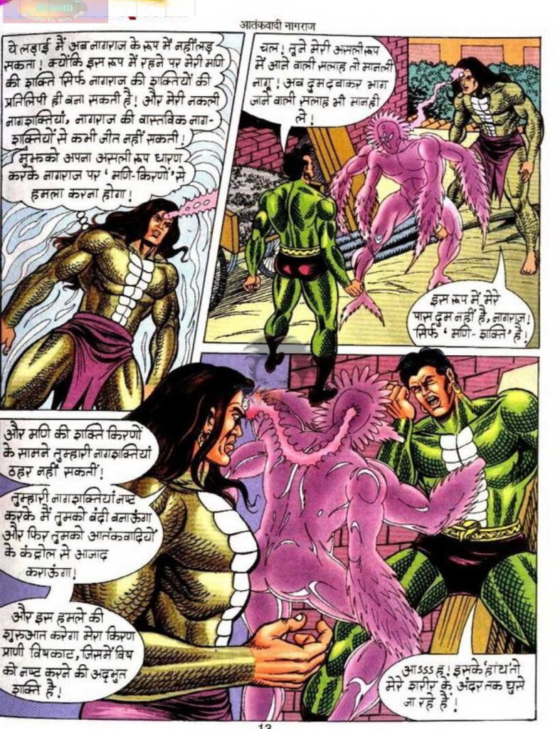 दूसरी तरफ परमाणु अपनी रेडिएशन शक्तियों के साथ नागराज को रोकने की कोशिश करता है। लेकिन यहाँ नागराज की चालाकी और उसका आतंकवादी दिमाग भारी पड़ता है। वह हर चाल का जवाब ऐसी चतुराई से देता है कि बड़े-बड़े सुपरहीरो भी मुश्किल में पड़ जाते हैं। यह हिस्सा एक गहरी सच्चाई भी सामने लाता है।