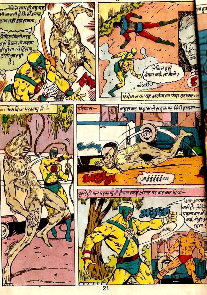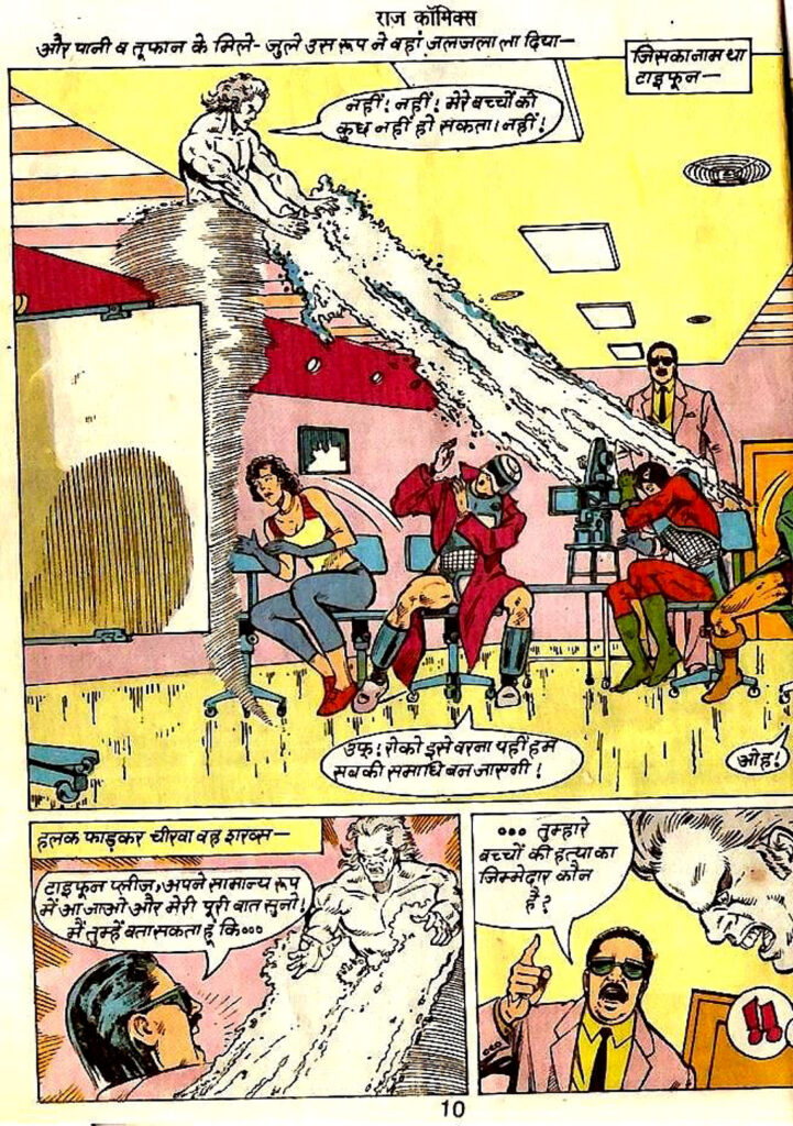 Professor Martin/Typhoon: Undoubtedly, the saddest and most powerful character in this story is Typhoon. A good man, a loving father, whom circumstances and a cruel conspiracy turn into a destructive force. His pain, his screams, and his hatred for Parmanu can be felt by readers. He’s a villain you don’t hate, but sympathize with. When he breaks down upon seeing the corpses of his children, that scene is one of the comic’s most memorable and moving moments. His every blow is not just a physical attack on Parmanu, but the cry of a broken heart.