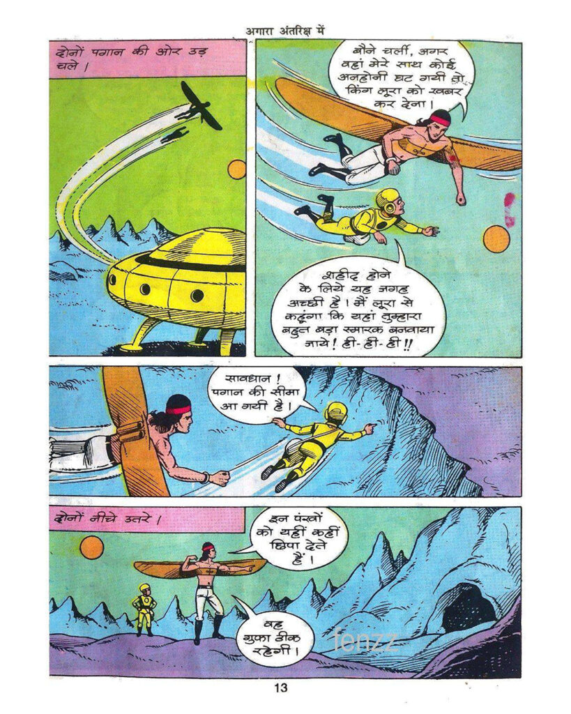 This story is a direct sequel to the previous comic “Angara Disappearances(Angara Gayab)”. In the previous story, we saw how Angara mysteriously disappears from a cave in the South Pole, caught in the grip of the dwarf Charlie. In this comic, the same mystery is revealed, and we are shown how Angara becomes part of a larger interplanetary war.