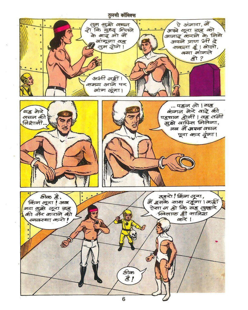 The story begins right where the previous comic ended. Angara regains consciousness and finds himself in an unknown place. Soon, he realizes that he is in the spaceship of ‘King Lura’. Here, he learns that he has been kidnapped by King Lura, who is the king of the planet ‘Lura’.