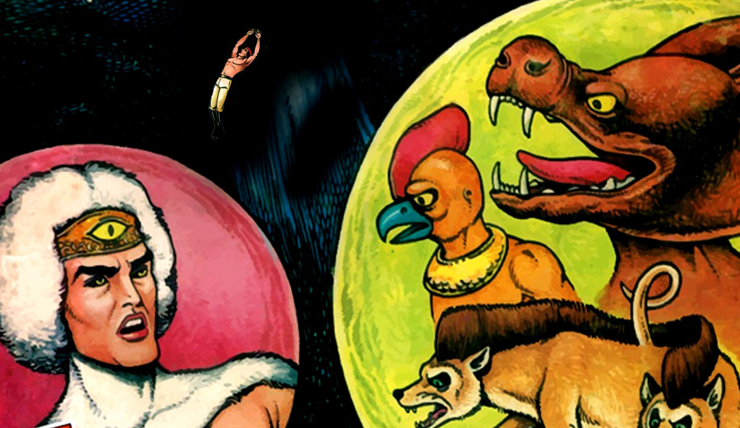 Angara on Pagan has to fight many dangerous animals—like two-faced dogs, lions, and other predatory animals. Angara has a ‘dual-speaking device’ (translator device), with the help of which he is able to talk to these animals. He explains to them that he is a “friend of all wild animals”. Here it becomes clear that Angara’s greatest strength is not just his strength, but his love and respect for animals. He makes these alien animals his friends and shows them the way to give up violence.