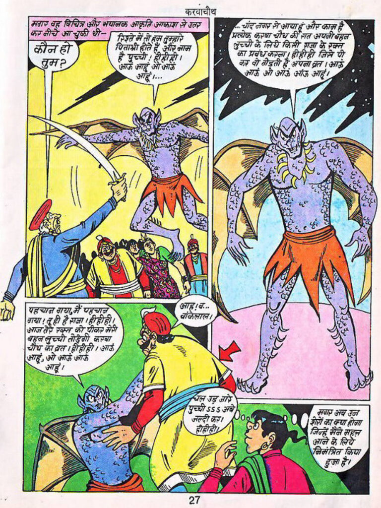 साल 1996 में प्रकाशित और लेखक तरुण कुमार वाही द्वारा लिखी तथा कलाकार बेदी द्वारा चित्रित कॉमिक्स “करवाचौथ” इसी सिलसिले की एक शानदार कड़ी है। इस बार कहानी में बांकेलाल का हास्य एक नए, घरेलू और पूरी तरह देसी माहौल में नजर आता है। कहानी भारतीय संस्कृति के मशहूर त्योहार ‘करवाचौथ’ के इर्द-गिर्द बुनी गई है, जो अपने आप में काफी अनोखा प्रयोग था।