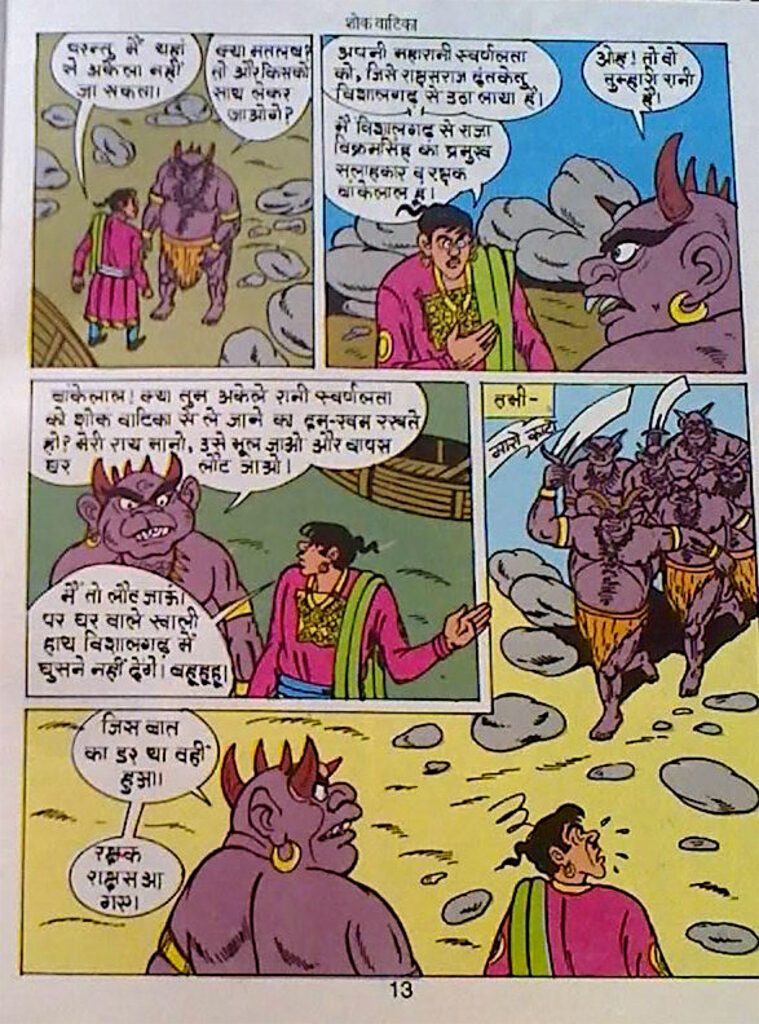 There are many scenes in the story that are remembered for a long time. The nose-cutting scene is the biggest turning point of the entire comic, where both Senapati’s stupidity and Dantketu’s anger are brilliantly shown. It is very fun to see Dantketu growling in the guise of a queen and the king getting scared after seeing her.