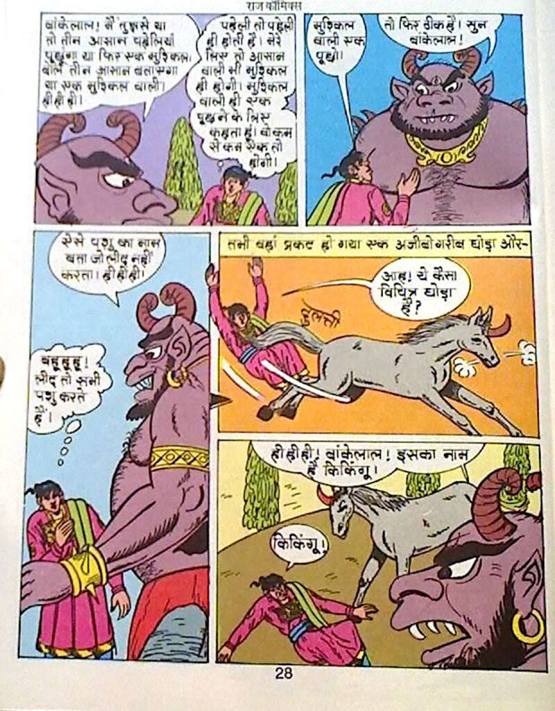 Tarun Kumar Wahi’s funny writing and Bedi ji’s excellent pictures make this story even more interesting. The world of demons, strange plants, and the slippery cunningness of Bankelal—all combine to create an atmosphere that makes laughter come out automatically while reading.