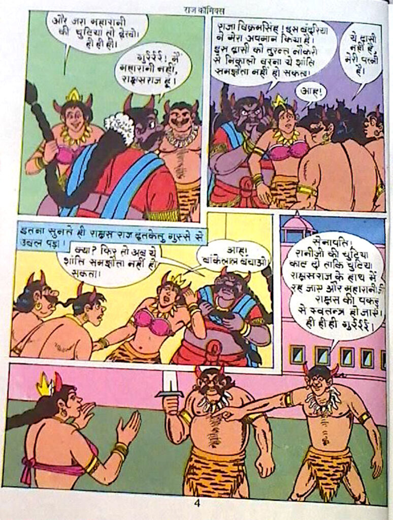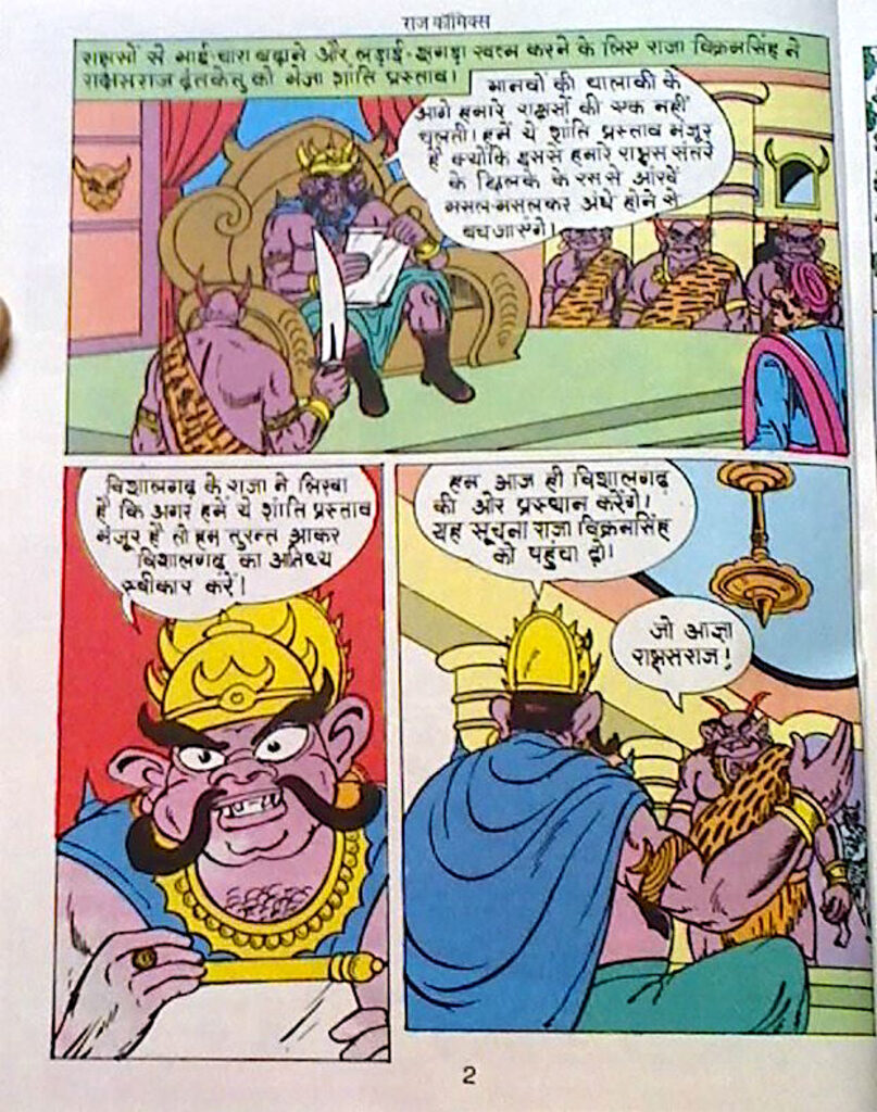 In the beginning, it is shown that Raja Vikram Singh sends a proposal of peace to Dantketu, the king of demons. Here, the author’s humor is visible in its full color. The monsters accept this offer because they fear having “orange peel juice” squeezed into their eyes by humans. It is an innocent fear, which forces even dangerous demons and immediately brings a smile to the faces of the readers.