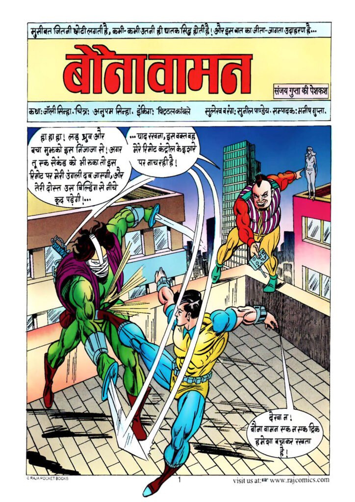 “Bauna Vaman” is a testament to the vision of the golden era of Raj Comics, not just a comic, which showed Indian superheroes like Super Commando Dhruv grappling with the dark aspects of science, technology, and cutting-edge crime. This special issue (No. 195, value ₹20.00), written by Jolly Sinha and illustrated by Anupam Sinha, was a great attraction for the readers of that time, as the story focused on the tricks and technological innovations of intelligence, not just physical force.
