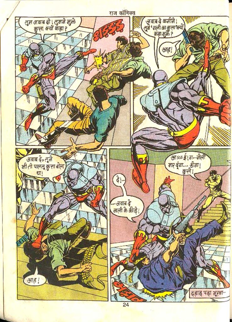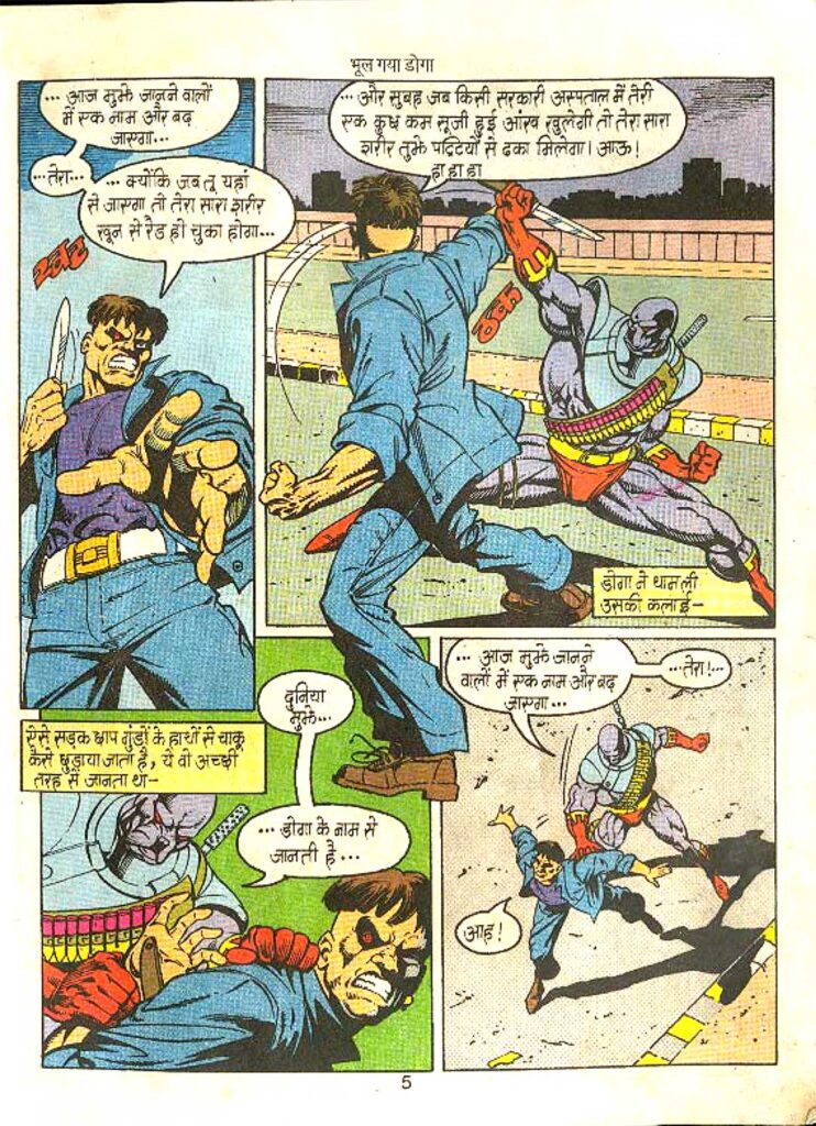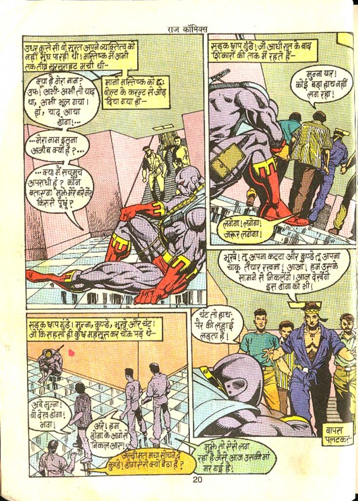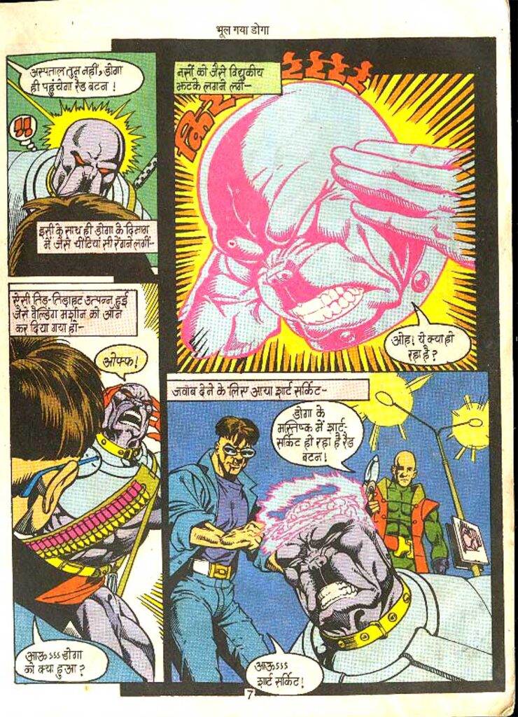 The villains of this comic, Doctor Avatar Gill aka ‘Red Button’ and his companion ‘Short Circuit’, show a new phase of crime. Often, villains in comics are only physically strong, but here Doctor Avatar Gill is a brilliant scientist who has used his intelligence to smuggle diamonds and commit crimes. His ‘short circuit’ weapon proves enough to bring down a powerful hero like Doga. The character of Red Button is shown to be extremely clever and calculated. He knows that it is not easy to defeat a defender like Doga with force, so he attacks his mind directly.