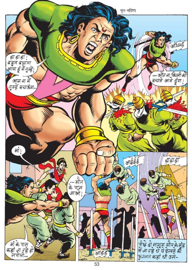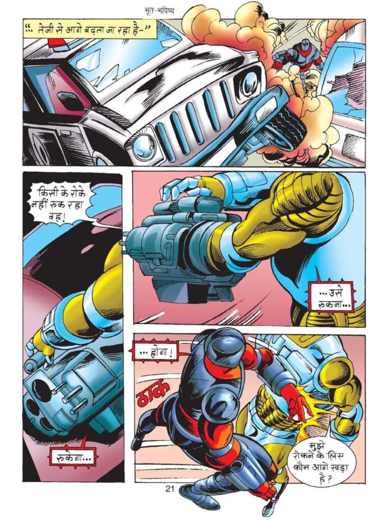 The title of this comic, ‘Bhoot Bhavishya,’ fits perfectly. It is not just a story of two different times, but it shows that while time and technology may change, the principles of heroism and justice always remain the same.