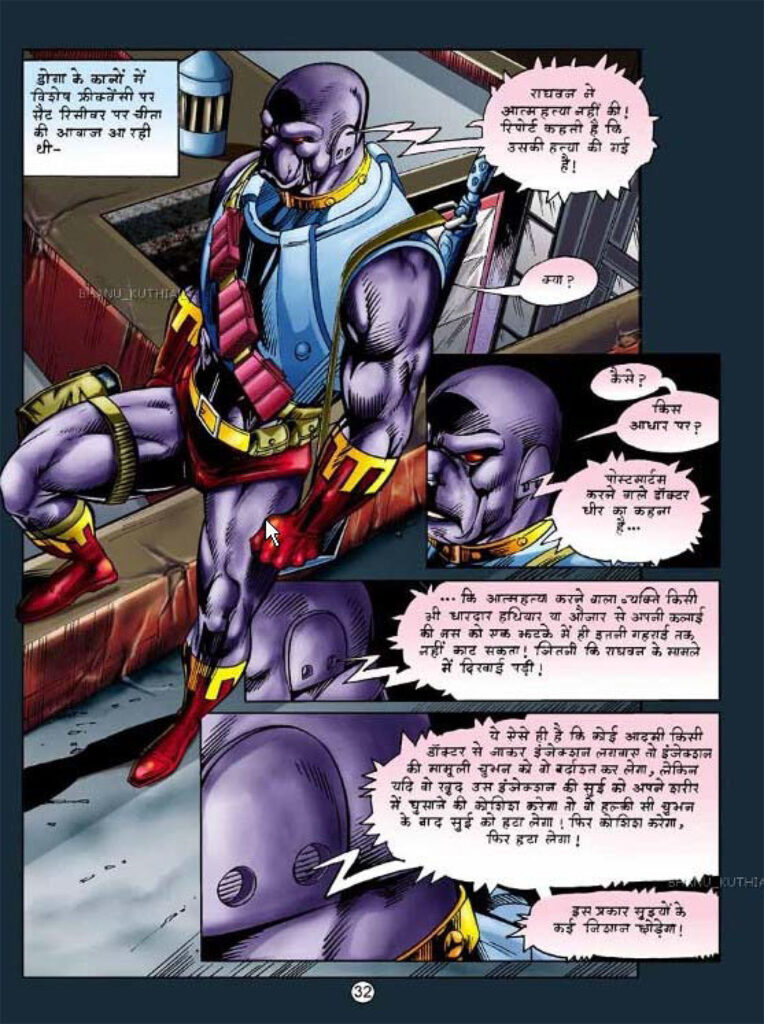 Psycho adds a little ‘supernatural’ touch to the story. He can tell whether a child is alive or not by looking at their ‘aura’ (Aura). This ability of Psycho takes the story beyond the limits of science, which is typical of the fantasy world of Raj Comics.