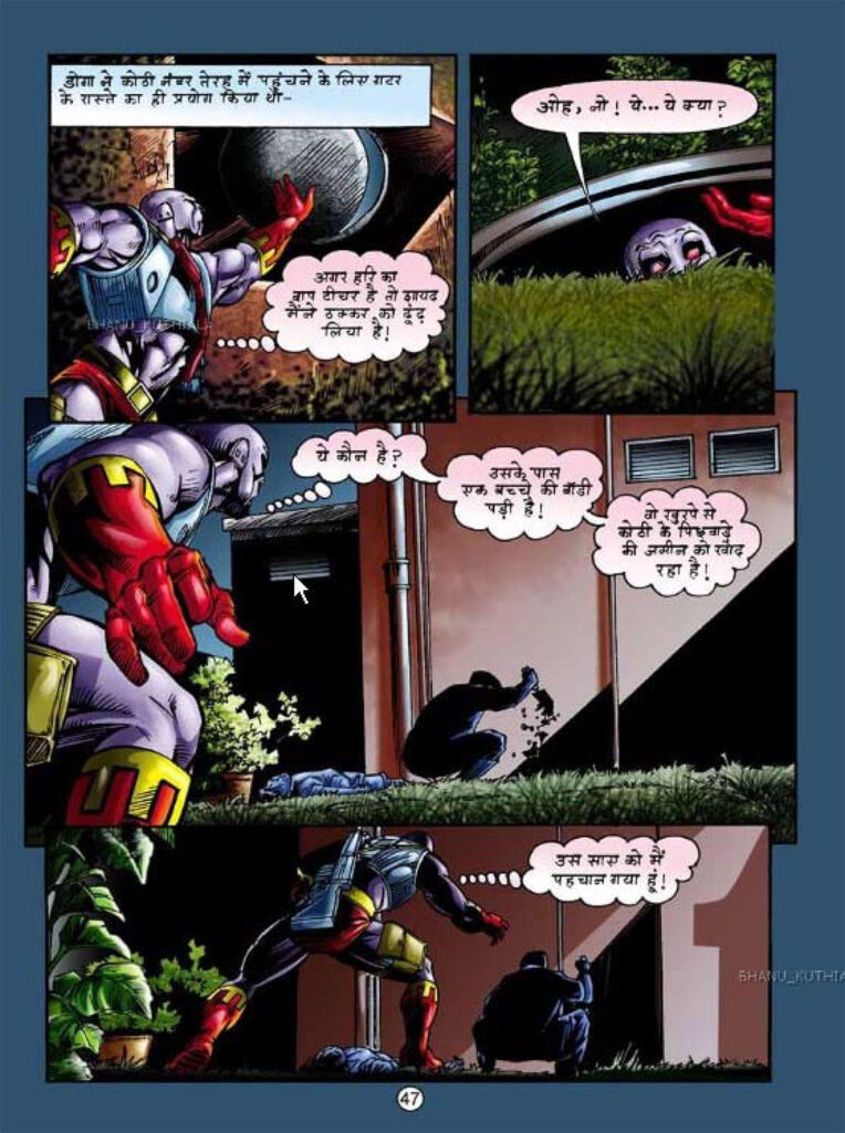 Doga suspects that the same beggar gang is behind the 30 children who disappeared from Mumbai (which was mentioned in the previous comic “Nikal Pada Doga”). He also rescues four children, but later realizes that he made a mistake. These were not the children he was looking for. This thing shows both Doga’s humanity and his limitations—he is not a superhero who knows everything; he can also be wrong.