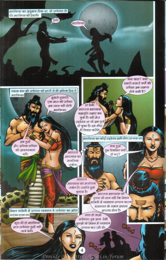 Sarpagandha: The real heart of this comic is Sarpagandha. She is one of the 1990s comic heroines who do not merely wait for the hero. Her initial anger and stubbornness reflect the depth of her love. When Mahavishya is in danger, she does not merely shed tears but decides to enter the battlefield herself. She symbolizes the wrath and power of the Takshak clan. Her character conveys that love is not just gentleness but also being a shield for each other.