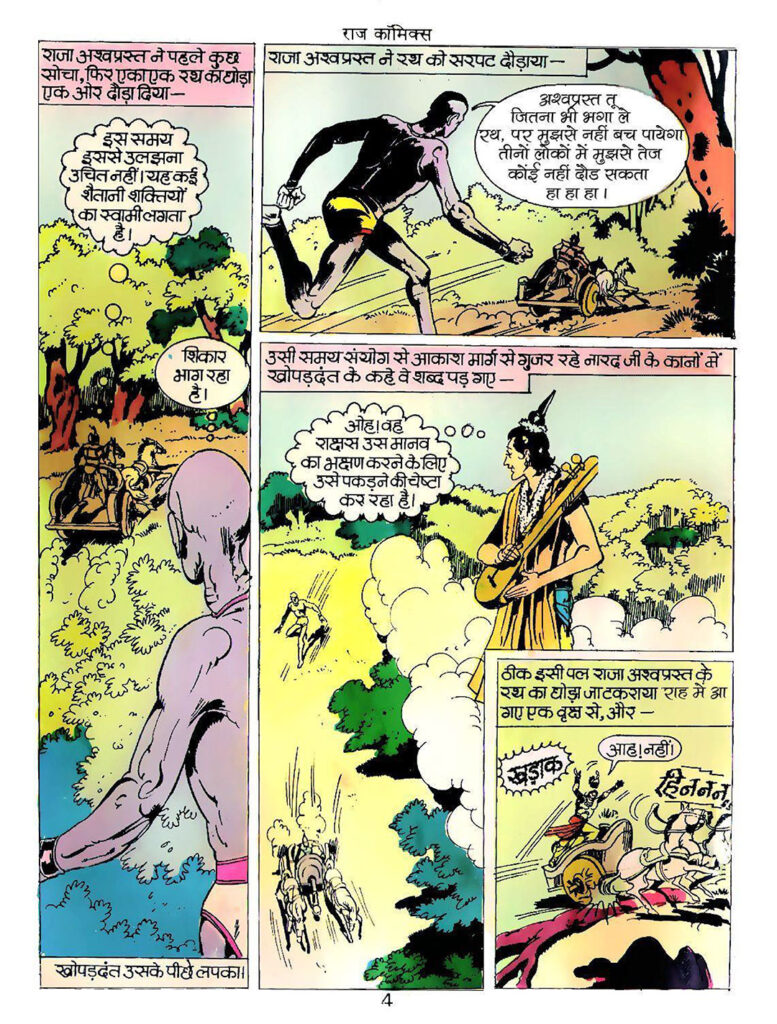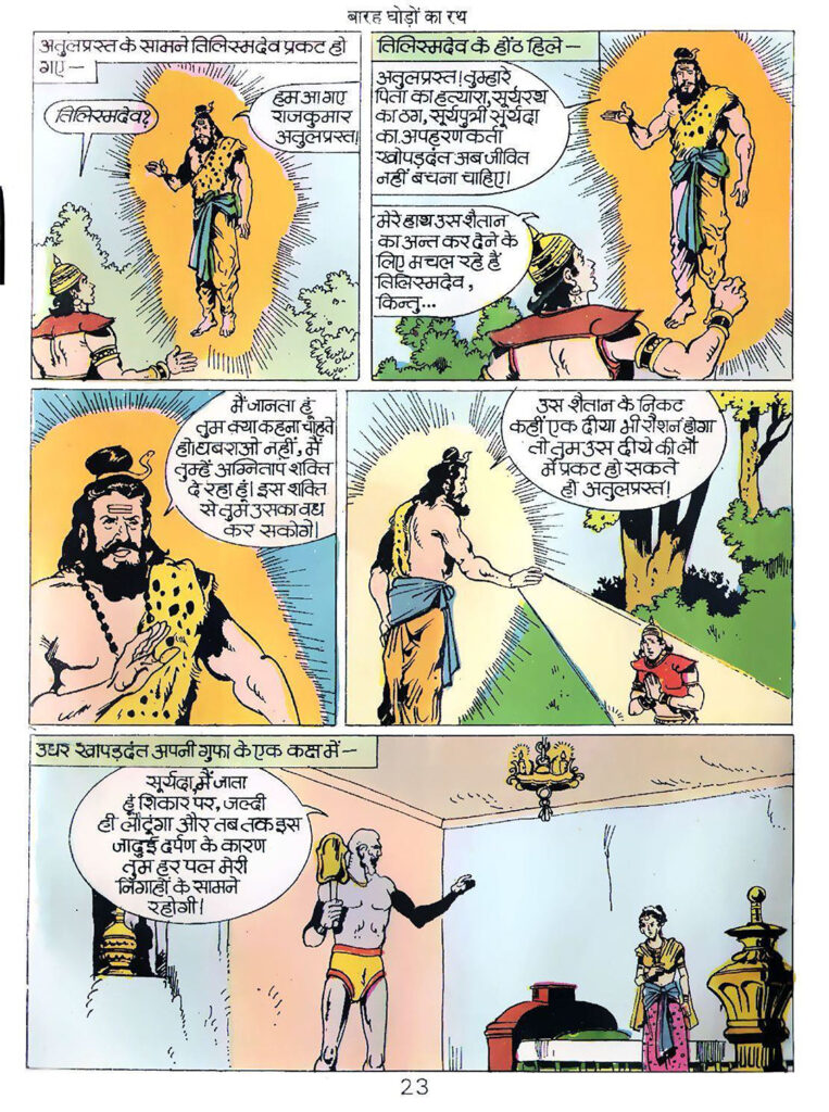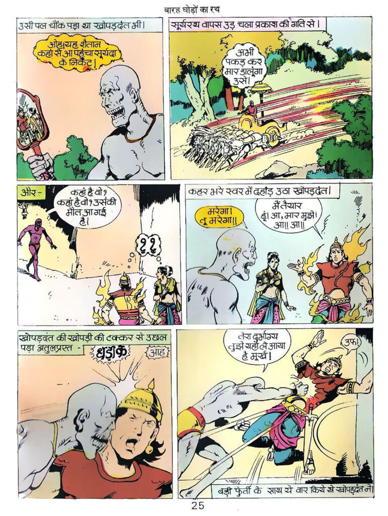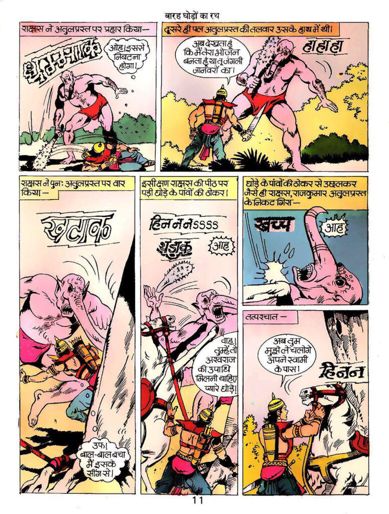 The most beautiful feature of Indian comics is that mythological elements are mixed very beautifully in fantasy. The “Chariot of Twelve Horses” is also a great example of this.