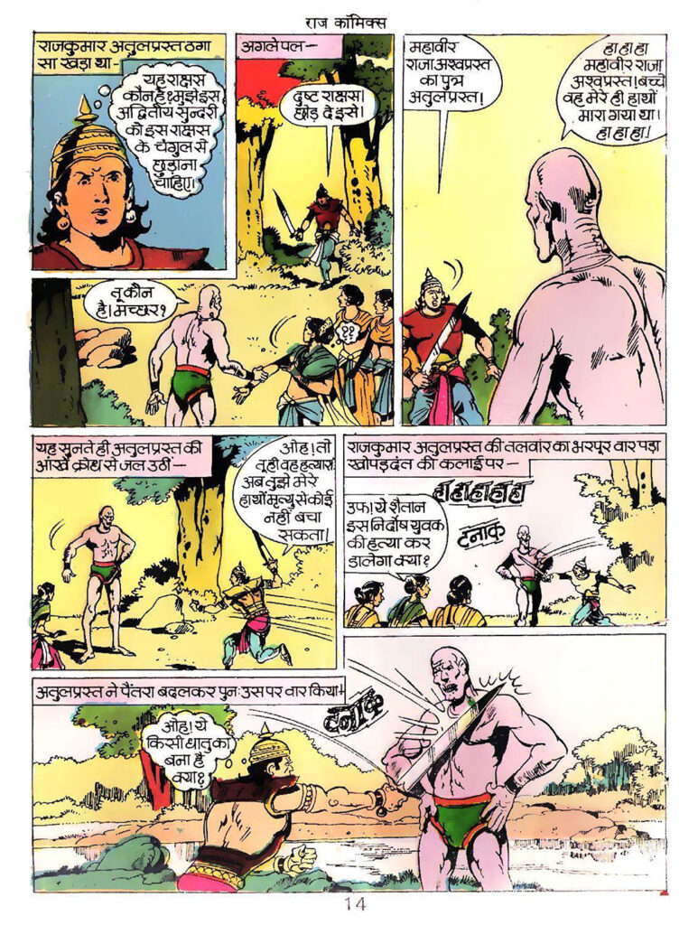 Also, the metal-like body of Khopadant and its defeat with the fire-filled hands of Atulaprasta may not fit from the point of view of science, but it seems absolutely acceptable in fantasy logic.