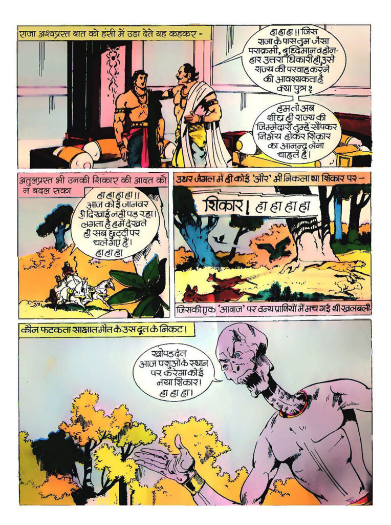 The story begins in the Khandavaprastha kingdom, where King Ashvaprasta is very fond of hunting. His hobby is so deep that he sometimes goes out into the forest alone. Another hunter is also roaming in this forest—but he kills humans, not animals. This is the dangerous monster Khopadant.