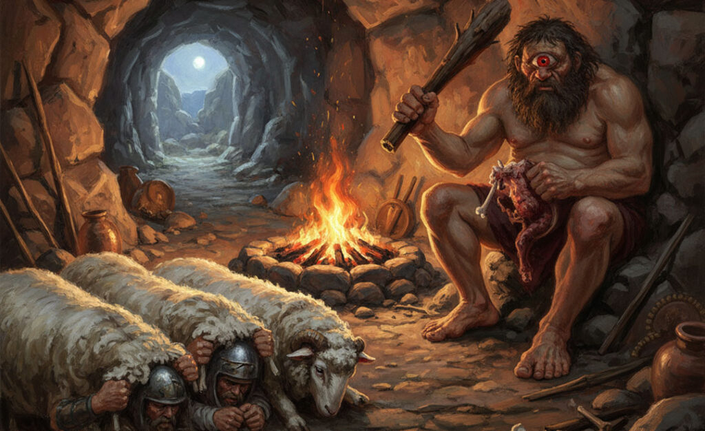 Blinded, when Polifemus shouted for help, he kept saying repeatedly— “Nobody has killed me!” The rest of the Cyclops are shocked to hear this and think it has gone mad itself. Because of this cleverness, Odysseus and his companions managed to escape the cave to save their lives.