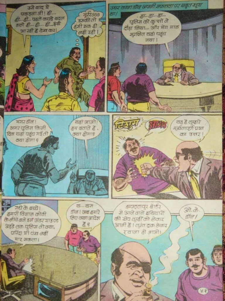 Crookbond is not a hero with superpowers like many other heroes. He wins with his intelligence and luck and seems like a common man, so readers easily connect with him. Most comics of that time were very serious, but Manoj Comics maintained constant humor through characters like ‘Dhamaka Singh’ and ‘Modru’.
