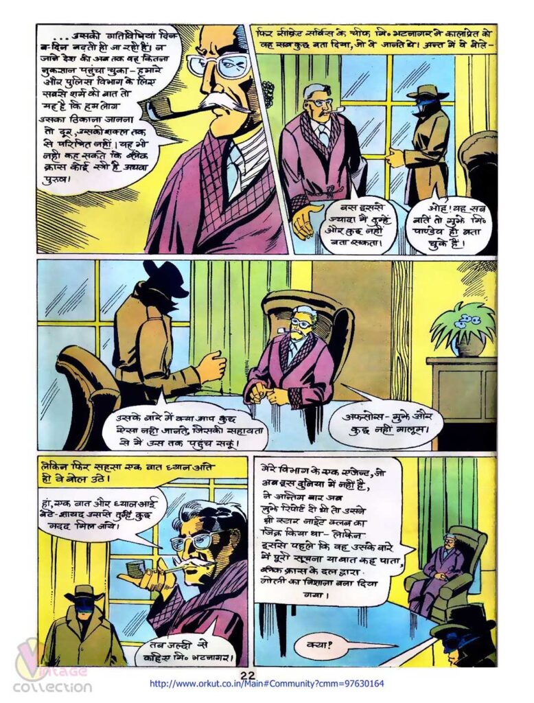 खास तौर पर एक्शन दृश्यों में ‘डिशूम’ और ‘आह’ जैसे साउंड इफेक्ट्स का इस्तेमाल उस दौर की कॉमिक्स की पहचान था। ब्लैक क्रॉस का लाल नकाब और उसकी चमकती आँखें उसे एक खतरनाक विलेन बनाती हैं। चित्रों में रंगों का चुनाव, खासकर रात के दृश्यों में नीले और काले रंग का इस्तेमाल, कहानी के रहस्यमय माहौल को और गहरा बना देता है।