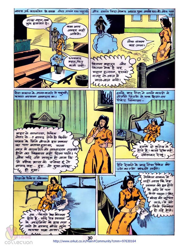 कहानी में नया मोड़ तब आता है जब काला प्रेत रात के सन्नाटे में एक सुनसान सड़क पर ‘रीटा’ नाम की लड़की को कुछ गुंडों से बचाता है। पहली नजर में यह एक सामान्य बचाव का दृश्य लगता है, लेकिन कहानी की गहराई कुछ और ही निकलती है। रीटा असल में ब्लैक क्रॉस के लिए काम करने वाली एक चालाक एजेंट थी, जिसने अपने कपड़ों के अंदर दो करोड़ रुपये के कीमती हीरे छिपा रखे थे।