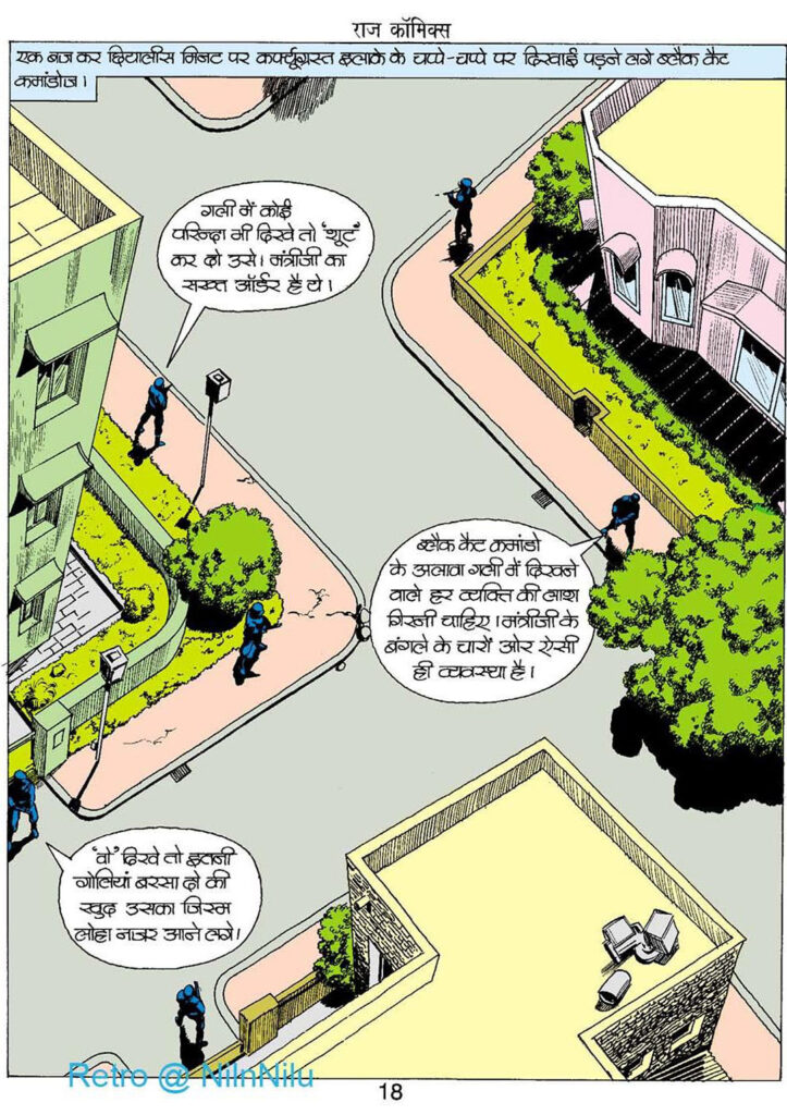 मंत्री की सुरक्षा में ‘ब्लैक कैट कमांडो’ तैनात हैं और उन्हें साफ़ आदेश है कि जो भी नज़र आए, उसे देखते ही गोली मार दी जाए। ऐसे माहौल में डोगा की एंट्री वाकई हैरान कर देने वाली है। वह 25वीं मंज़िल से सीधे नीचे कूदता है—एक ऐसा रहस्यमयी इंसान, जिसके जिस्म में मानो फौलाद भरा हो और रगों में लहू की जगह बारूद दौड़ता हो।