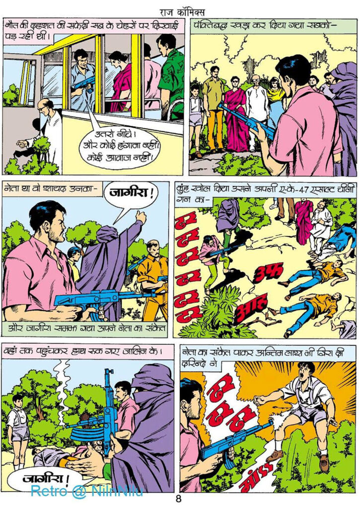 मनु का आर्टवर्क इस कॉमिक की सबसे बड़ी ताक़त है। 90 के दशक की राज कॉमिक्स की पहचान बन चुकी शैली यहाँ पूरी तरह नज़र आती है। रंगों का चुनाव, ख़ासकर डोगा का बैंगनी और लाल सूट, बहुत असरदार लगता है। खून-खराबे और गोलियों की बौछार वाले सीन इतने बारीकी से बनाए गए हैं कि पाठक खुद को उस तनाव और हिंसा के बीच खड़ा महसूस करता है।