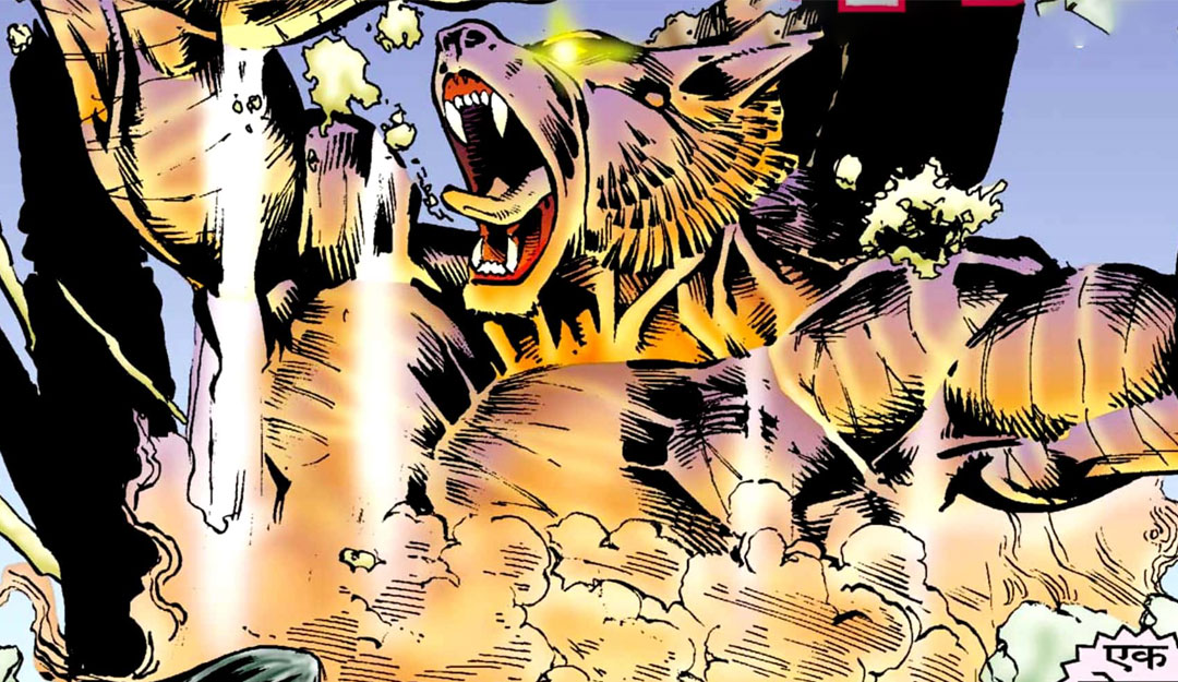 The middle part of the story turns into a triangular conflict between the powers of Bhediya, Kobi, and Doma. Kobi fights Jangaru to avenge his insult, while Bhediya confronts Jangaru and Shakal to save the forest from Doma’s havoc. This battle takes the reader to the pinnacle of adventure. Shakal, powered by Doma’s spirit, appears to be an invincible enemy. Bhediya attacks him with termites and mud, trying to trap him, but Doma escapes each time.