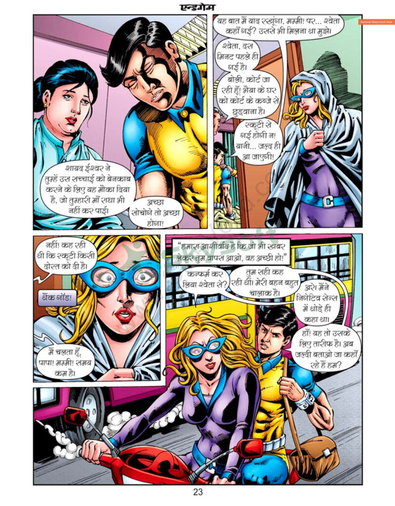 ‘End Game’ starts from where all the secrets are at their peak. Radha has returned, but is she the loving mother Dhruv remembers? Or has she become someone’s weapon now? Hunters are looking for a special ‘formula’ that Radha has. This background lifts this comic from a simple action story to a deep and emotional thriller.