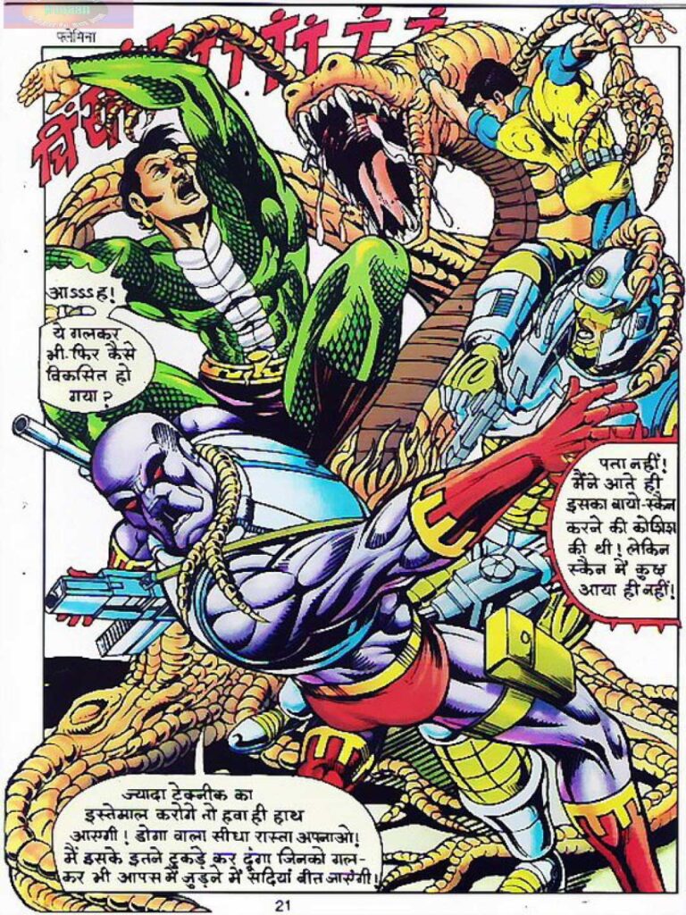 कहानी की खास बात यह है कि हर नायक को उसकी अपनी पहचान के साथ दिखाया गया है। नागराज अपनी सर्प शक्तियों और जबरदस्त फुर्ती के साथ लड़ते हैं। ध्रुव अपनी तेज दिमाग और वैज्ञानिक समझ से गुरू की तकनीक को समझने की कोशिश करते हैं। डोगा अपने सख्त और बेखौफ अंदाज में दुश्मनों से भिड़ते हैं। स्टील अपनी भारी तकनीक और आधुनिक हथियारों के साथ जंग में उतरते हैं।