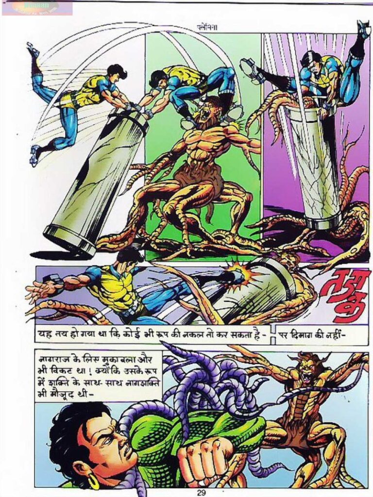 सबसे मजेदार और रोमांचक मोड़ तब आता है जब छोटा नागराज यानी विषांक और साइब्रो चुपके से गुरू के कंट्रोल सेंटर तक पहुँच जाते हैं। साइब्रो अपनी कंप्यूटर जानकारी का इस्तेमाल करता है और गुरू के सिस्टम में एक एंटी-प्रोग्राम डाल देता है। यह सीन साफ दिखाता है कि आज की लड़ाइयाँ सिर्फ मुक्कों और हथियारों से नहीं, बल्कि टेक्नोलॉजी और कोडिंग से भी जीती जाती हैं।