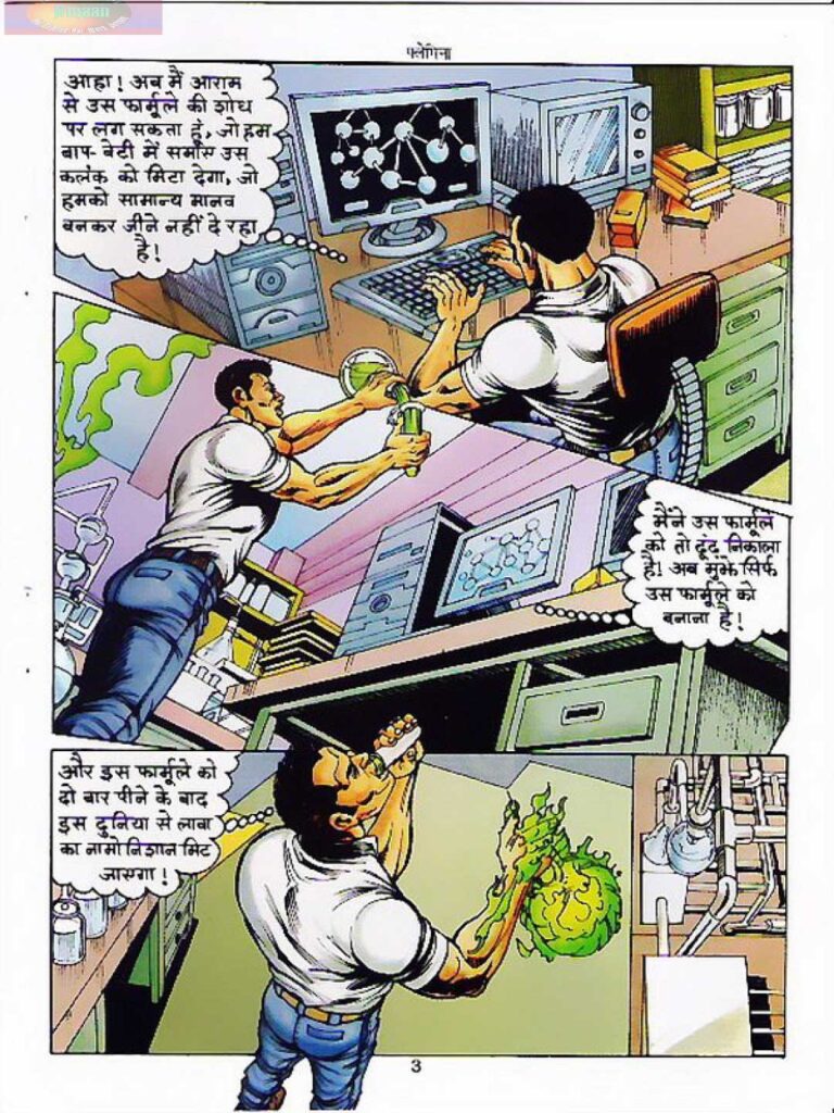 ‘फ्लेमिना’ उस दौर में आई थी जब राज कॉमिक्स नए-नए प्रयोग कर रहा था और अलग तरह की कहानियाँ पेश कर रहा था। कहानी जॉली सिन्हा ने लिखी और चित्र अनुपम सिन्हा ने बनाए। दोनों की जोड़ी ने मिलकर ऐसी कहानी रची जिसमें विज्ञान और फंतासी का अच्छा संतुलन देखने को मिलता है। इस कॉमिक्स की खास बात इसका टाइटल किरदार ‘फ्लेमिना’ है, जो एक नई सुपरहीरोइन के रूप में सामने आती है। लेकिन कहानी सिर्फ उसके इर्द-गिर्द नहीं रुकती, बल्कि पूरी धरती को बचाने की जंग तक पहुँच जाती है।