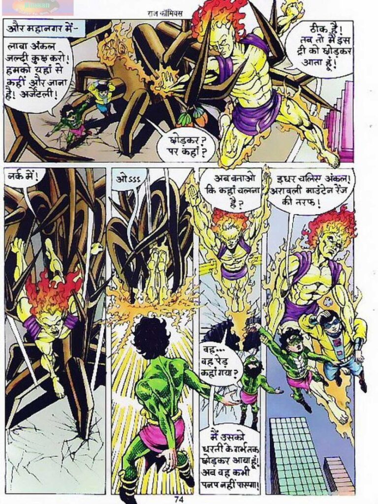 पाइपों के अंदर होने वाली लड़ाई, हिमालय की बर्फीली चोटियाँ और बारिश के दृश्य आज भी प्रभाव छोड़ते हैं। उस दौर की छपाई की सीमाओं के बावजूद रंगों का इस्तेमाल कहानी को और जीवंत बना देता है।