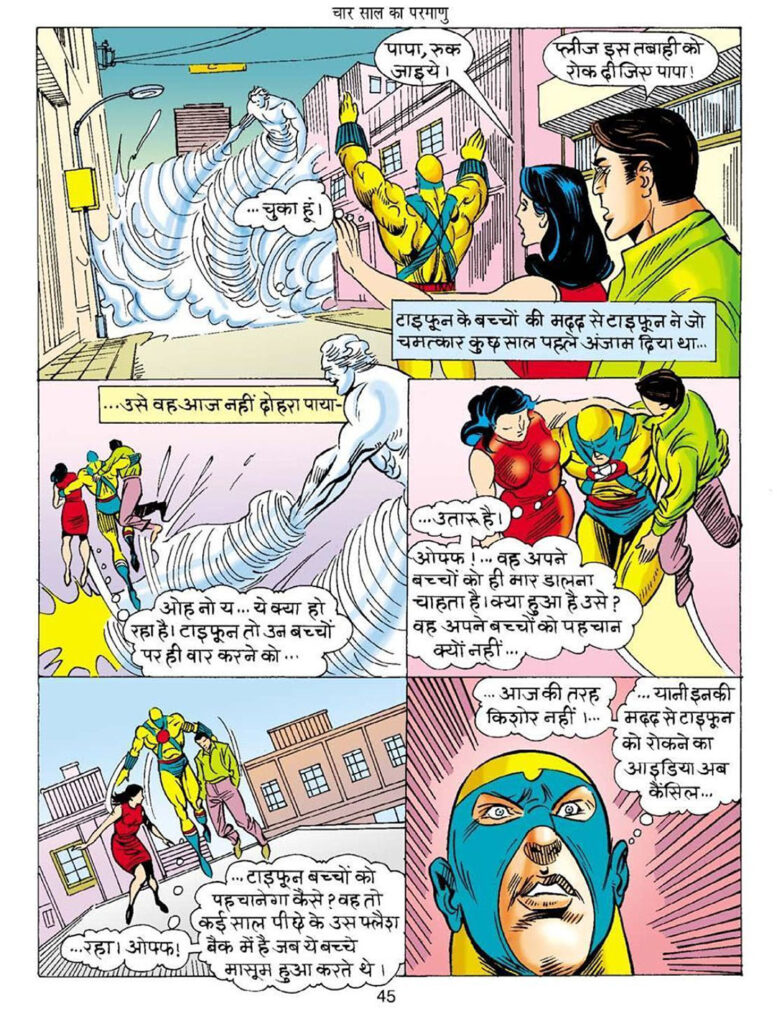 ‘Parmanu’ is a superhero who is known for his technique, gadgets, and sharp mind more than his physical strength. Inspector Vinay, who is the true identity of Atom, always remains a mystery to the world of crime. This comic named “Four Years of Atom” raises questions in the minds of readers with its title itself. Has Atom really become a child? Can a four-year-old fight criminals?