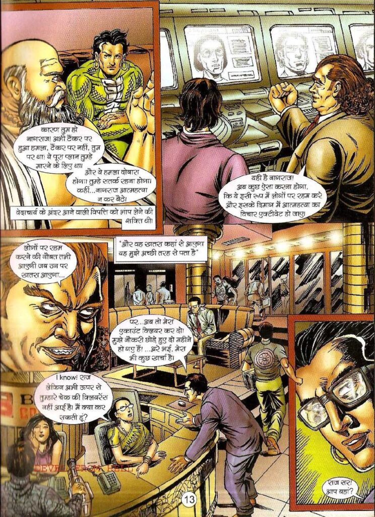 यह एजेंसी सिर्फ एक बिजनेस नहीं है, बल्कि महानगर में फैले नागराज के दुश्मनों पर नजर रखने और नागराज के ‘गुप्त रूप’ को ढूँढने का एक मजबूत जरिया है। भारती और सौडांगी के बीच की समझ और उनकी चिंता पाठकों को भावनात्मक रूप से जोड़ती है। यह देखना दिलचस्प है कि एक सुपरहीरो की गैरमौजूदगी में उसके साथी किस तरह पूरी जिम्मेदारी संभालते हैं।