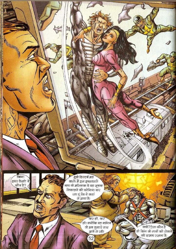 इस सीरीज का मुख्य विलेन ‘किंग’ कोई साधारण अपराधी नहीं, बल्कि एक बेहद चालाक रणनीतिकार है। पन्ना संख्या ५२ और ५३ पर हम उसे ‘नागदंत’ के दिमाग से जानकारी निकालने की कोशिश करते देखते हैं। वह अच्छी तरह समझता है कि नागराज की असली ताकत सिर्फ उसके शरीर में नहीं, बल्कि उसके रहस्यमयी अतीत और उसके अलग-अलग रूपों में छिपी है।