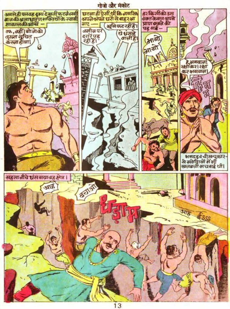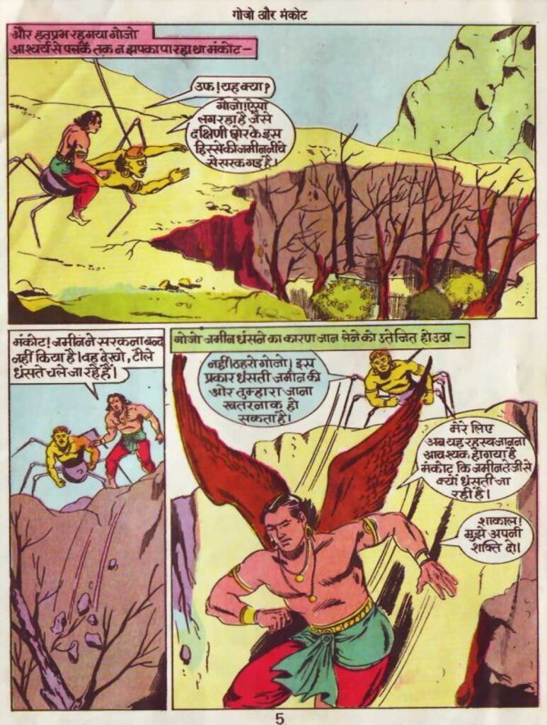 The success of “Gojo and Monkont” also owes a lot to its artistry. The way Rahul Deshpande has portrayed the Mankonda Empire and the strange creatures there goes beyond imagination. The designs of the creatures are very impressive as half-human and half-insect (Insectoids). The detail shown in the sinking scenes of the earth was quite advanced for that time. The choice of colors—deep green, brown, and red—brings the atmosphere of the forest and mystery fully alive. Every action scene has a sense of movement, which drags the reader into the story. It is this artwork that makes Gojo’s spiritual powers feel like a reality, not just imagination.