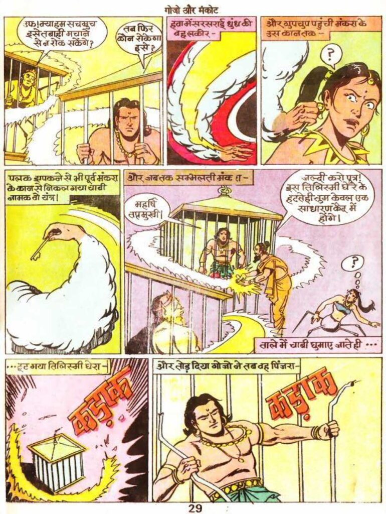 Here, the author has given good depth to the character of Mankara. She is not an ordinary villain, but a daughter who is ready to go to any extent to honor her father. By hanging the key of the cage in her ear coil (Bali), she challenges Gojo, which creates tremendous suspense in the story.
