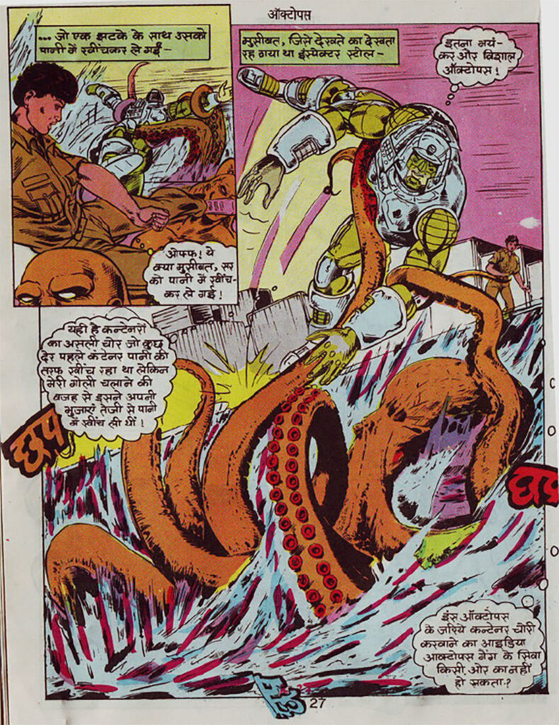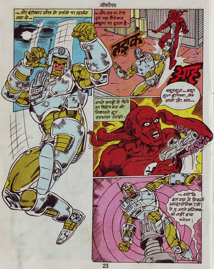 A superhero who looked completely like iron, but inside whom a heart still beat. This hero was—Inspector Steel. ‘Octopus’ is a tremendous and thrilling story of this very steely protector. This comic is not limited to just action, but also brings out the depth of Inspector Steel’s character, his old identity (Inspector Amar), and his honesty towards his duty. The pairing of writer Hanif Azhar and artist Naresh Kumar has presented a balanced and strong story in this issue, which captivates the reader from the very first page.
