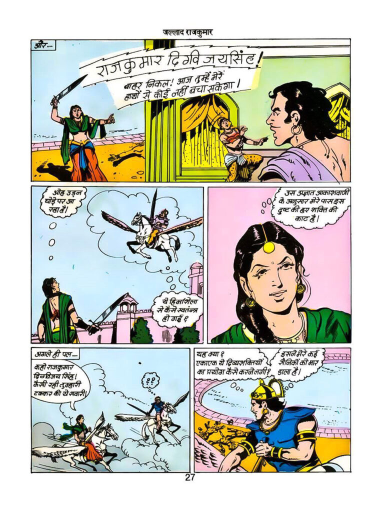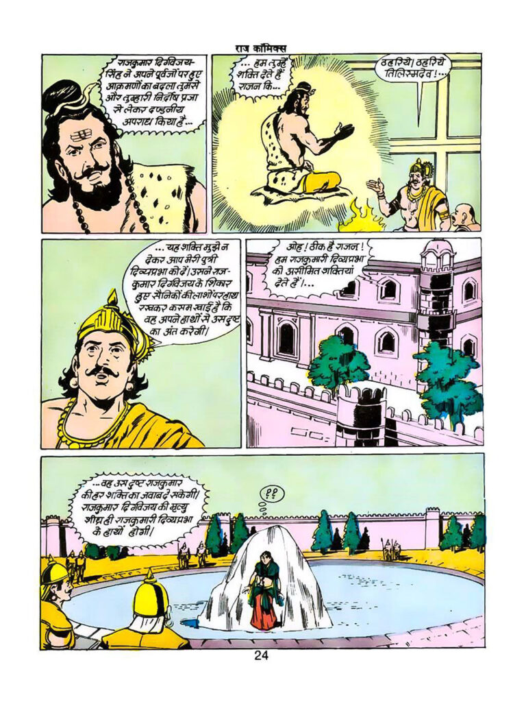 In this comics, Princess Divyaprabha comes across as a strong female character—who fights for her kingdom and her honor herself. The divine intervention of Tilism Dev gives this story the color of a beautiful Indian fantasy, as found in our mythological stories.