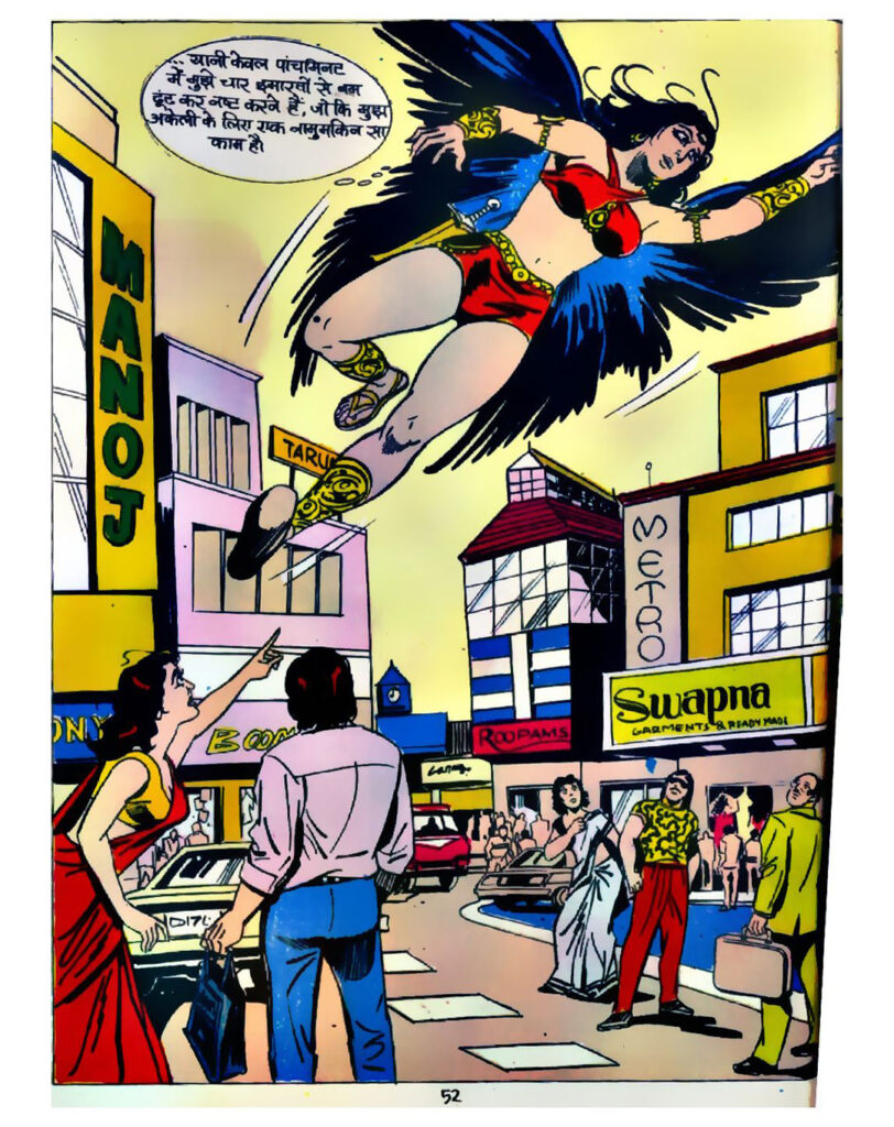 Kanga, a heroine who had the power to fly. Her large wings made her look like a dangerous and overwhelming warrior, not an angel or a fairy. “Hathkadi” is a special issue of the Kanga series, which was no less than a superhit film for the readers of that time. Today when we sit in the digital era and read this comic again, it does not just take us nostalgically, but also offers a great example of the fantastic style (storytelling) of writing and showing the story of the time.