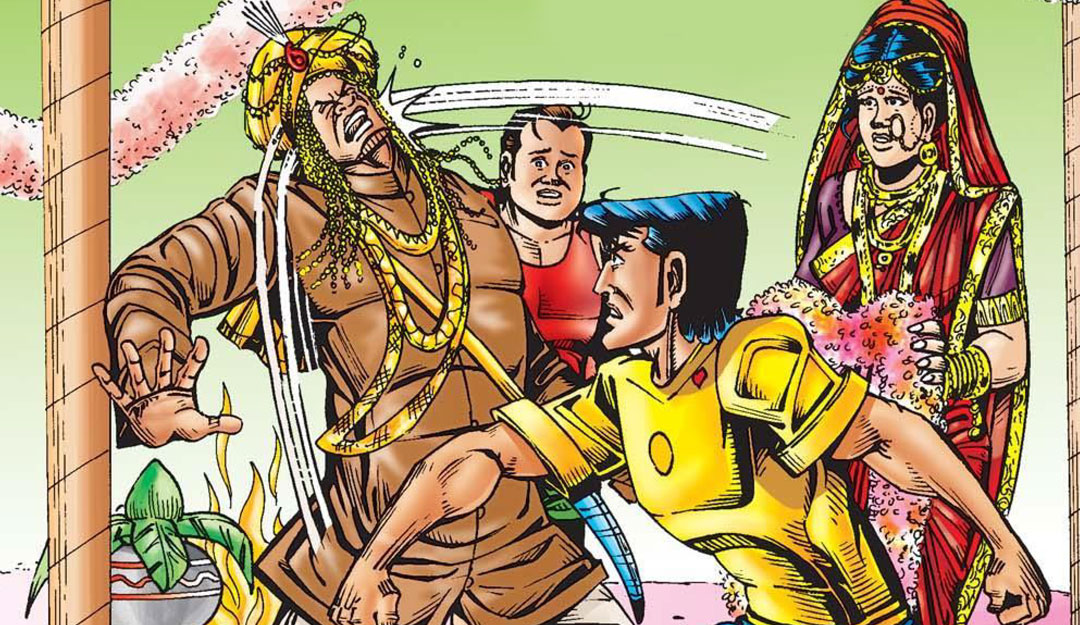 “Khana Kharab” (Bad Food) is a hilarious comic from Raj Comics, featuring Gamraj as the hero. The concept itself is so funny that it’s bound to make you laugh! Gamraj is a hero who, after witnessing poverty and people’s suffering, decided to dedicate himself to serving humanity. Pleased with his noble work, Yamraj himself adopted him as his son. So, our hero is the heir to the God of Death!