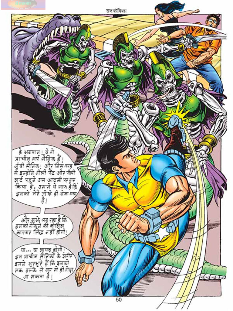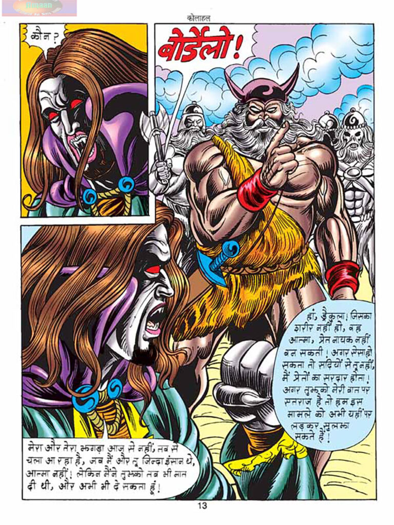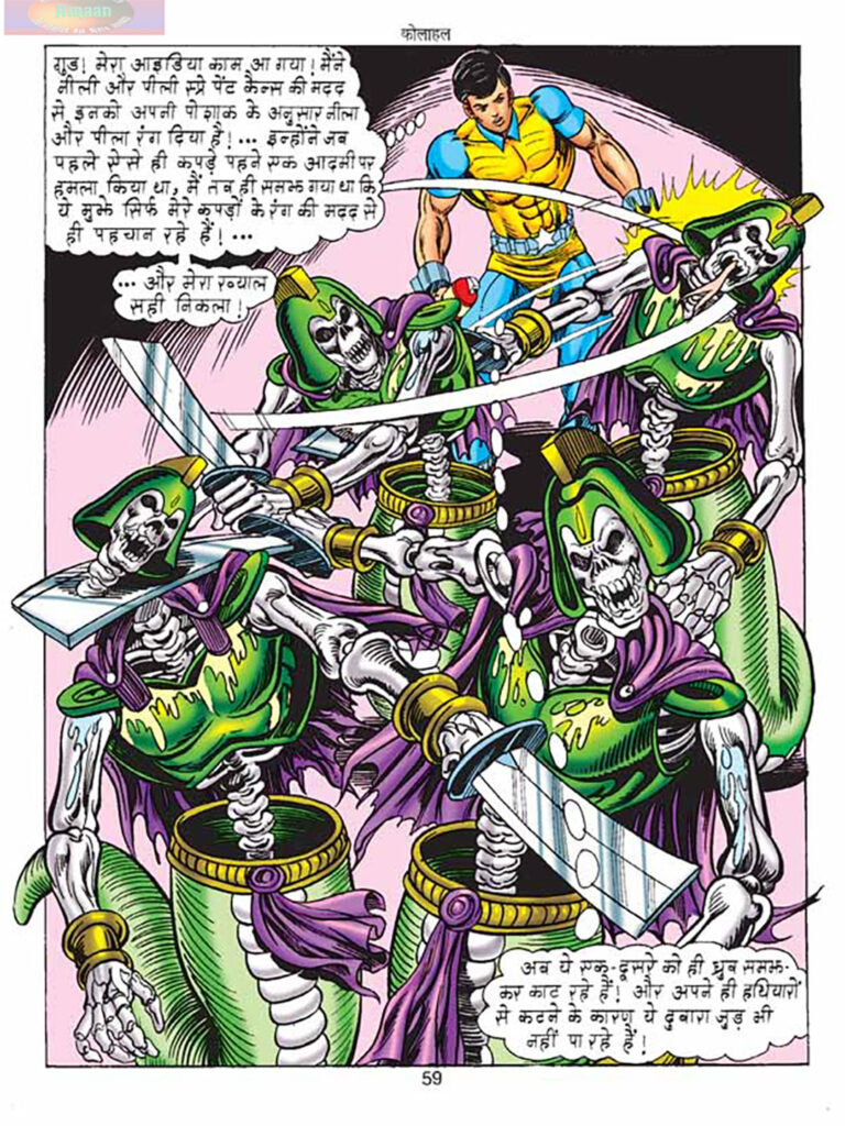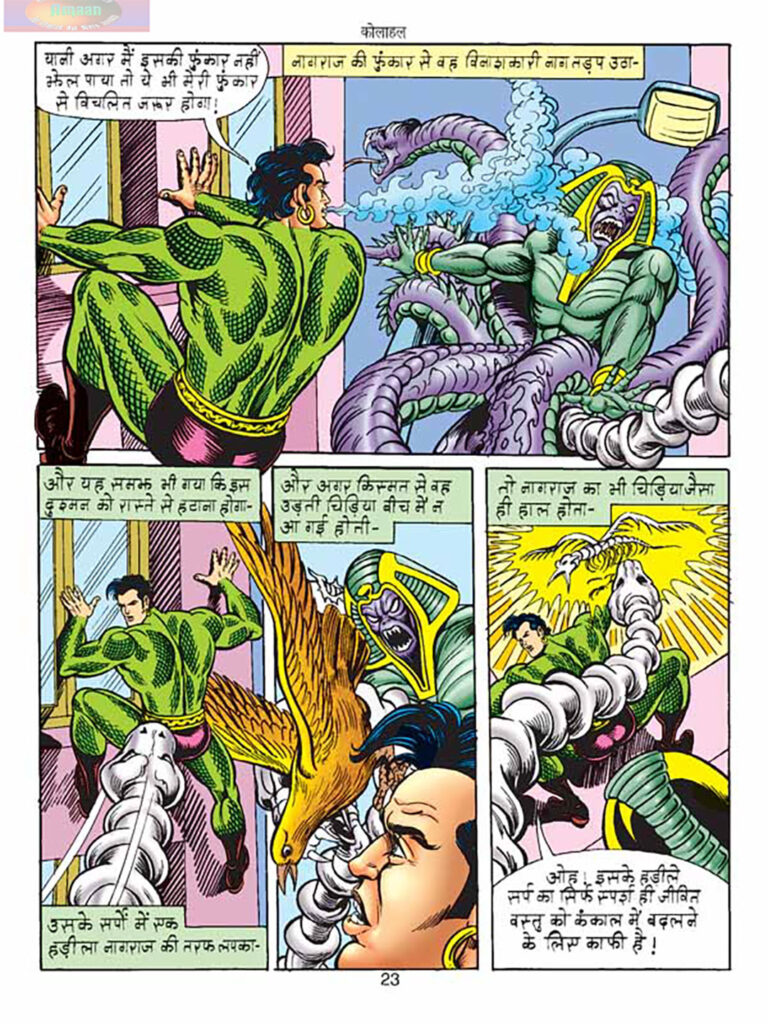 Raj Comics special issue ‘Kolahal’ is a complete entertainment package. It can be considered a fine example of the golden age of Hindi comics. It contains everything a reader expects—two major superheroes, a terrifying and almost immortal villain, magic, action, and drama.