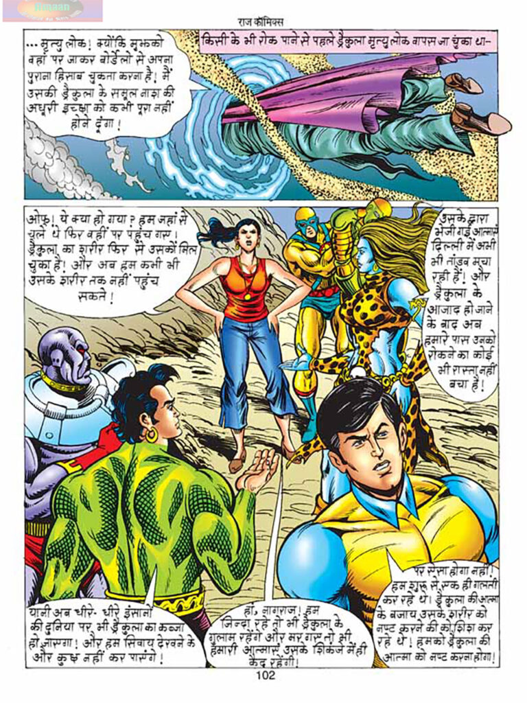 Dracula’s phantom servants begin to create huge chaos on Earth, especially in the metropolis and Rajnagar. They capture the bodies of innocent people, and devastation spreads all around. Nagraj and Dhruv try to fight this invisible enemy, but quickly come to understand that physical strength is ineffective against spirits.