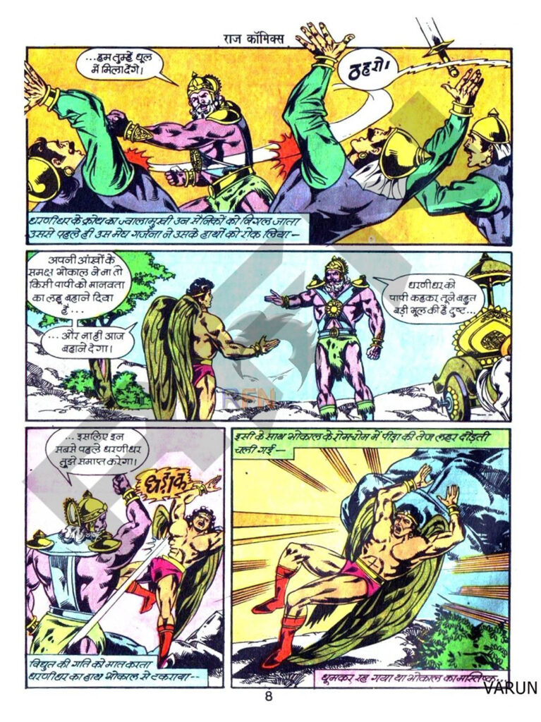 इस कॉमिक्स का सबसे चौंकाने वाला दृश्य है—जहाँ भोकाल, जिसने अभी-अभी महारावण को मारा है, धरणीधर के सामने बिलकुल कमजोर लगने लगता है।