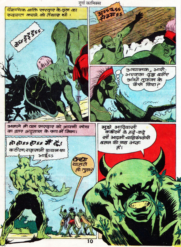 कॉमिक्स की भाषा सीधी-सादी हिंदी है, जिसमें उर्दू के शब्द भी बड़ी सहजता से घुले-मिले हैं। संवादों में हल्का सा नाटकीयपन है, जो इसे पल्प फिक्शन वाली फील देता है। “तेरा यही अंत होना था दुष्ट कटीला!” जैसे संवाद वीर रस को अच्छे से उभारते हैं। लेखक डी.डी. पोखरियाल ने ‘जम्मा हो’, ‘हरया हो’ और ‘यूनो’ जैसे आदिवासी शब्दों का इस्तेमाल करके कहानी में एक अलग जान डाल दी है। ये शब्द न सिर्फ माहौल को असली बनाते हैं, बल्कि आदिवासियों की संस्कृति और आस्था को भी सम्मान के साथ पेश करते हैं।