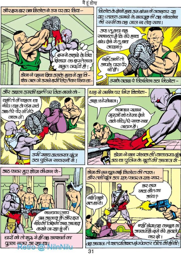 डोगा नायलॉन की रस्सियों से बना एक खास जाल इस्तेमाल करता है, जिसमें किलोटा के हाथ-पैर उलझ जाते हैं। यह लड़ाई साफ दिखाती है कि डोगा सिर्फ मसल्स वाला हीरो नहीं है, बल्कि एक समझदार रणनीतिकार भी है। वह सही समय पर सही दांव लगाता है और यही उसे बाकी नायकों से अलग बनाता है।
