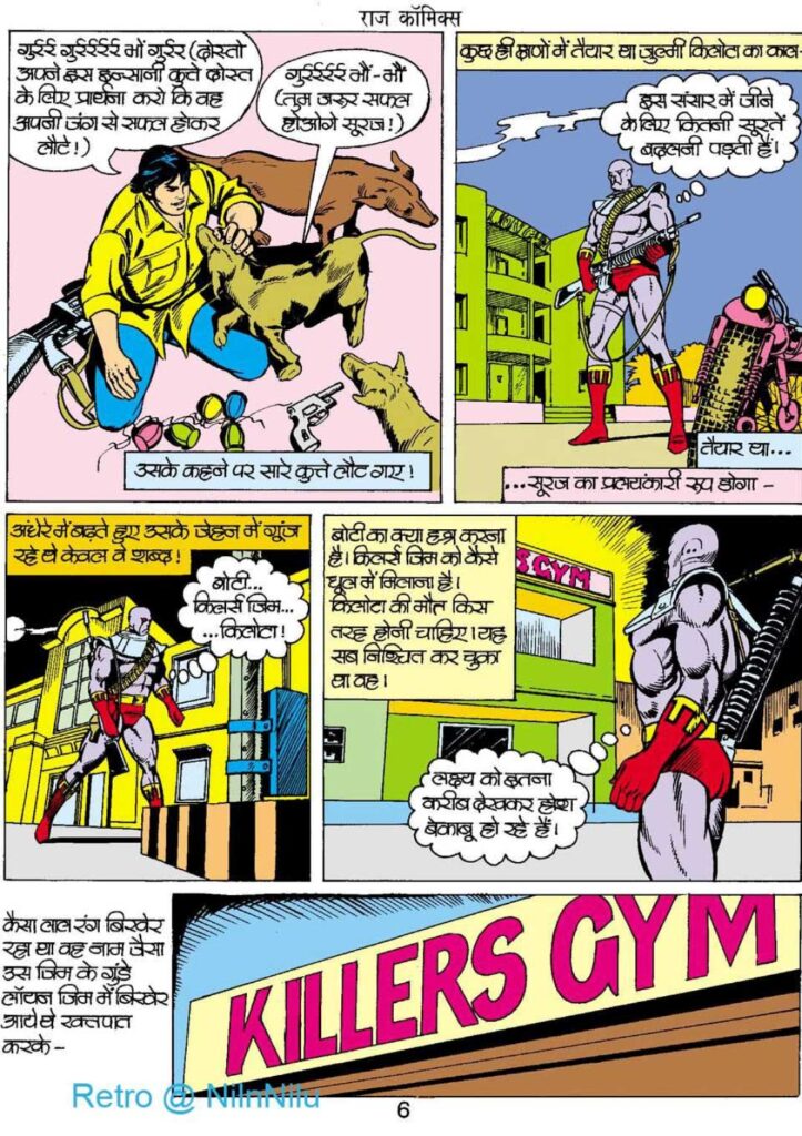 इस कॉमिक्स का मुख्य विलेन ‘किलोटा’ (Kilota) है, जो ‘किलर्स जिम’ का मालिक है। किलोटा सिर्फ एक साधारण अपराधी नहीं है, बल्कि एक प्रशिक्षित और बेहद ताकतवर फाइटर है। उसने अपने जिम के पहलवानों को ‘ब्लैक बॉयज’ नाम की गैंग में बदल दिया है, जो शहर में बैंक डकैती और हत्याएं करती है।