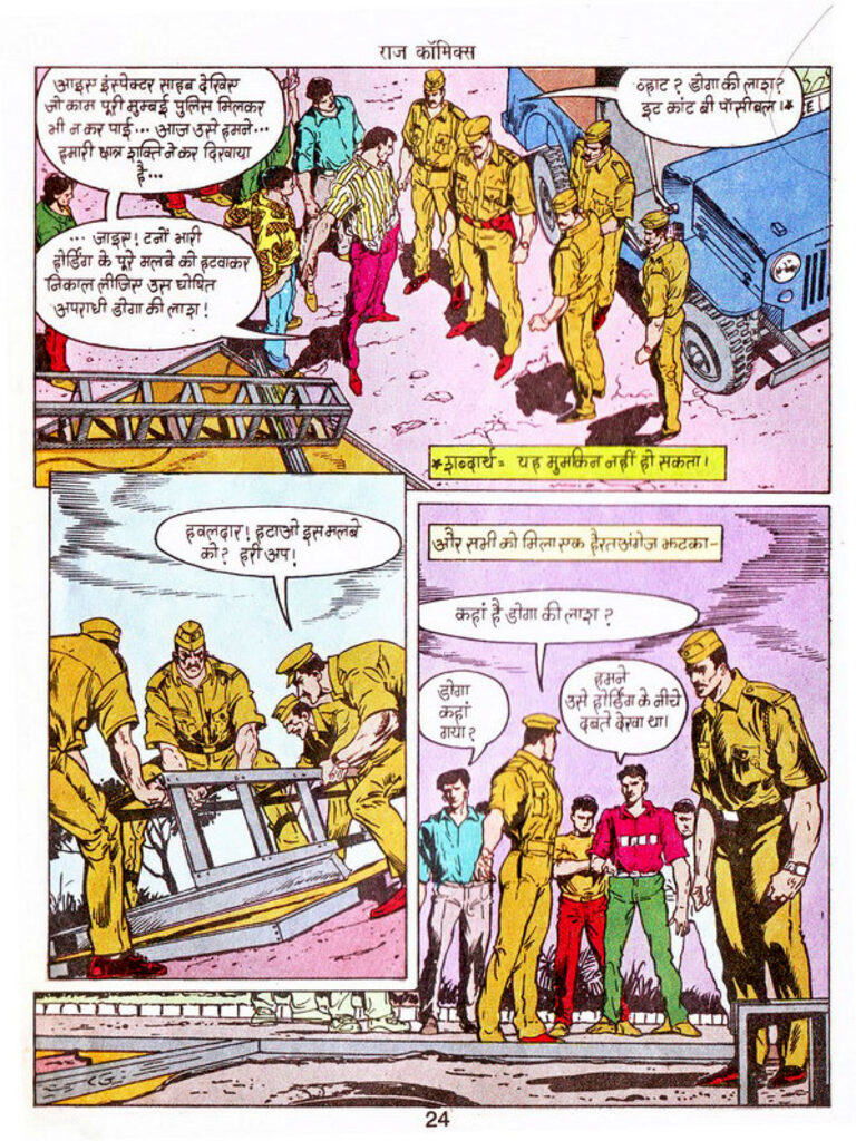 कॉमिक का बीच वाला हिस्सा एक्शन और रोमांच से भरपूर है। डोगा रेस्तरां पहुँचता है और जल्द ही उसे एहसास हो जाता है कि उसके साथ धोखा हुआ है। इसके बाद जो लड़ाई शुरू होती है, वह भारतीय कॉमिक्स के सबसे बेहतरीन एक्शन सीक्वेंस में गिनी जा सकती है।