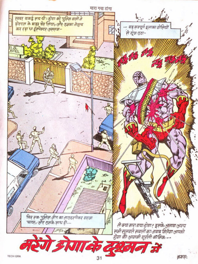 “Mara Gaya Doga” is not just an entertaining action comic. It is a story ahead of its time that grapples with complex questions of media trials, public perception, and vigilantism (taking the law into one’s own hands). It shows how blurred the line between hero and villain can be, and that truth often depends on who is telling the story.